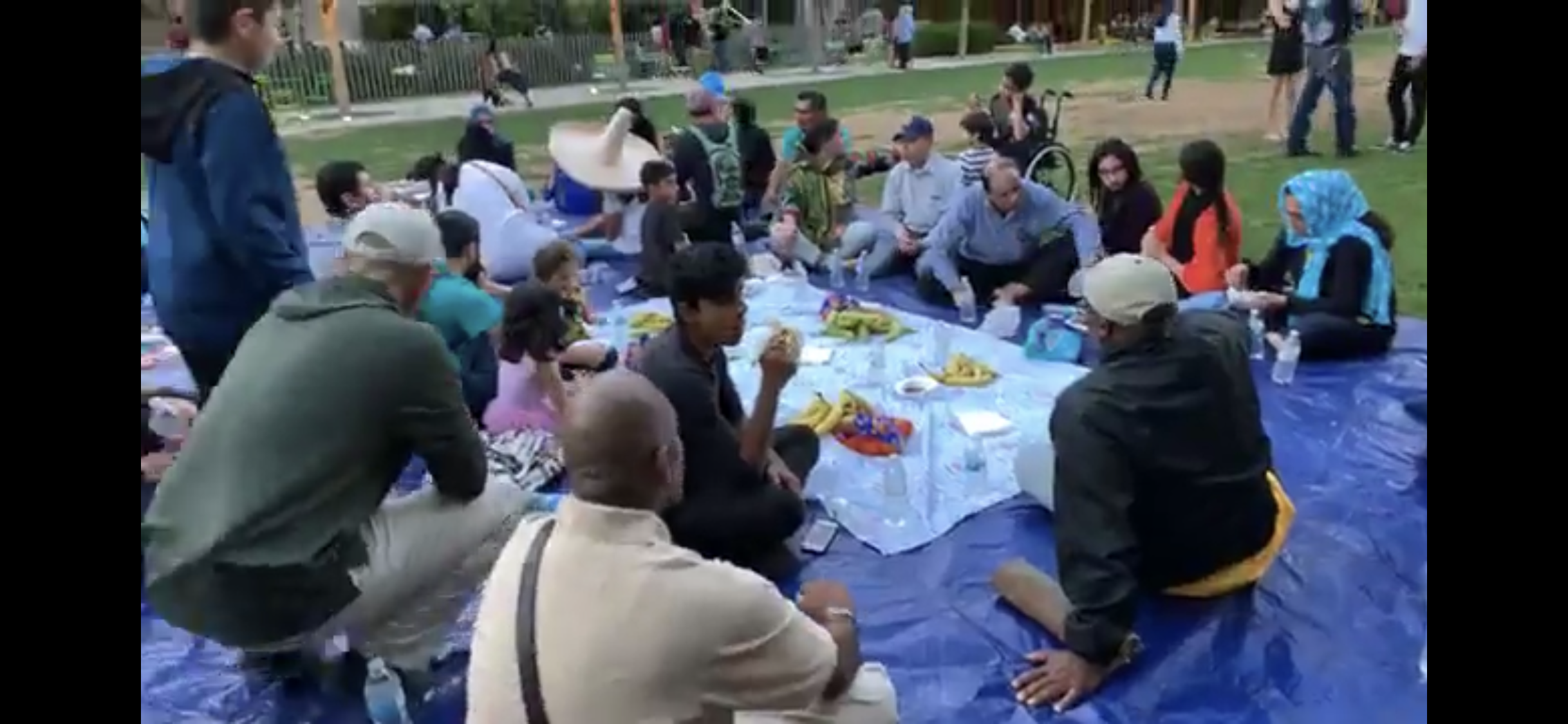 -This is a little bit of what happened yesterday at the Public Iftar in front of the Dallas Museum of Art @Klyde Warren Park, Downton Dallas. Invinting non muslims to break bread with us.
