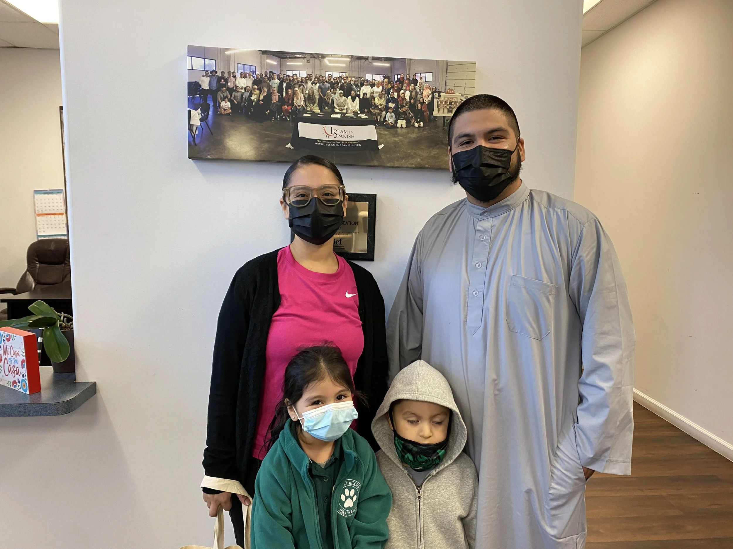 Al estar casado y tener 2 hijos pequeños, era importante para él mostrarle a su esposa cómo el Islam ha impactado su vida y que tiene una familia/comunidad para apoyarlo a él y a su familia. Después de un par de meses, su esposa, Marisol, luego de ver videos que hemos producido y conectarse con algunas de las hermanas de nuestra comunidad, decidió aceptar el Islam como su forma de vida. Con la Gracia de Dios