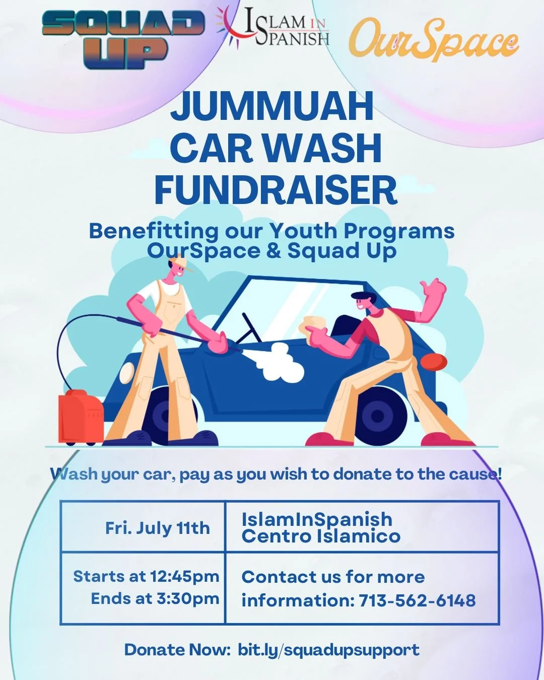 Join us this *Friday, July 11th* for our *Jummuah Car Wash Fundraiser* at IslamInSpanish Centro Islámico!