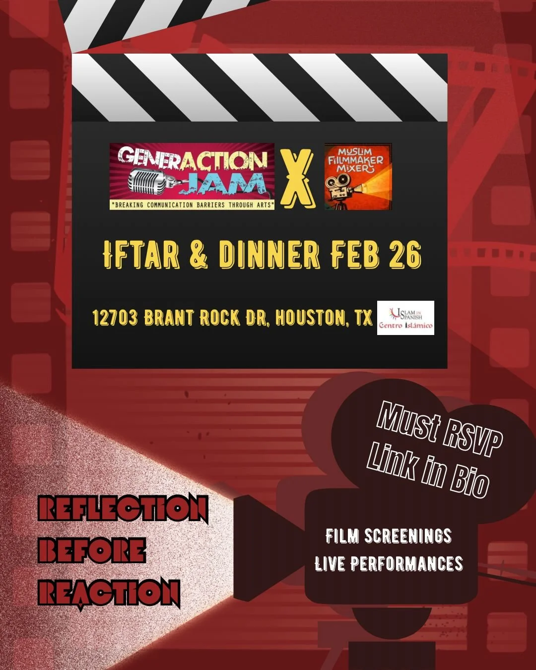 #GenerActionJam #MuslimFilmmakerMixer #ReflectionBeforeReaction #IftarNight #HoustonEvents
