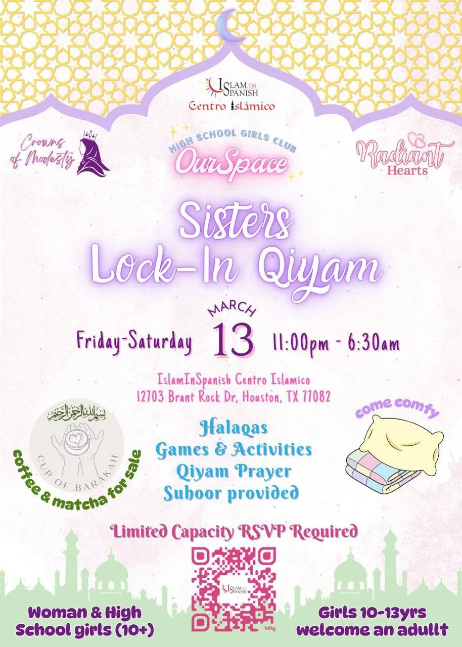 We’re excited to announce our annual Sisters-only Lock-In Qiyam at IslamInSpanish 🕌💗