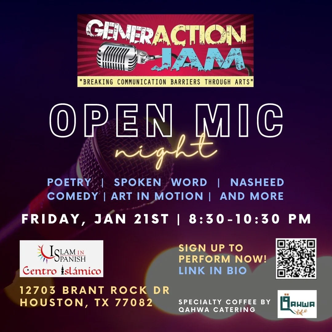 The livest show to hit Houston’s poetry, comedy, and live entertainment scene is here. Founded by a group of College students powered by IslamInSpanish looking to create a live, clean, judge-free, and art-filled environment to welcome local talent to showcase their skills.