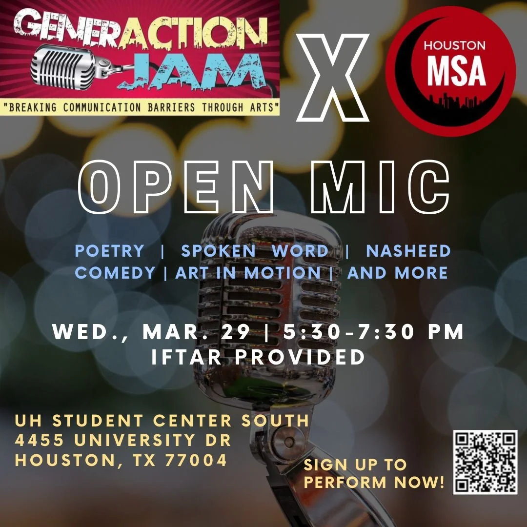 Attention Houston! The next GenerAction Jam will be at UH next Wednesday, Mar. 29th! We are looking for artist to perform, dm @generactionjam if you’re interested!!
