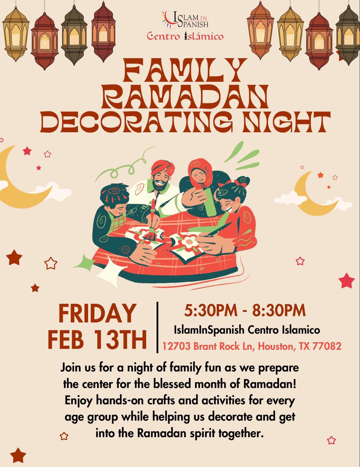 Join us for a cozy night of family fun as we get our center ready for the blessed month of Ramadan ✨