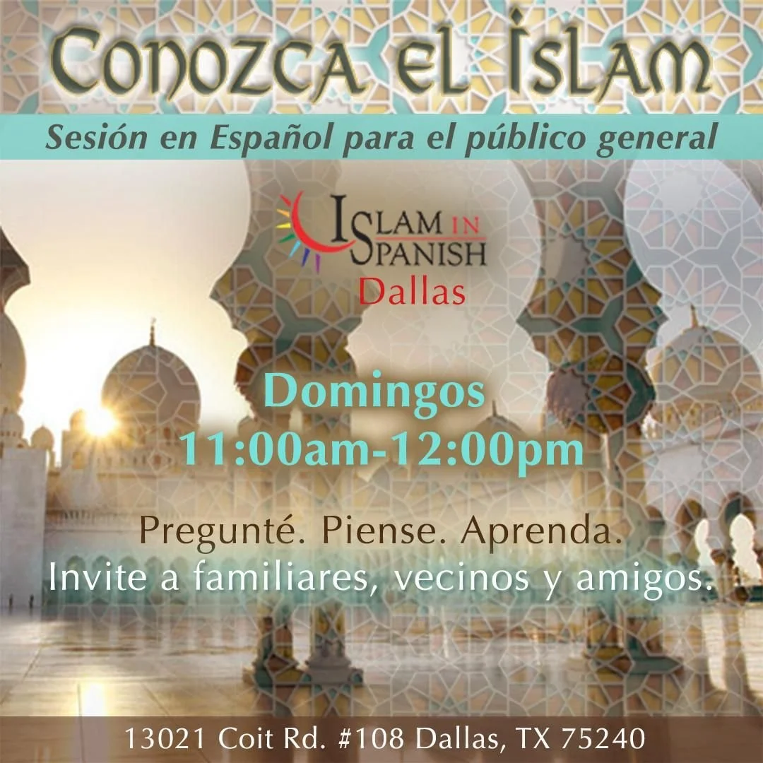 Acompáñanos cada domingo a las 11am para otra sesión de "Conozca el Islam" con Luis Fernandez en el IslamInSpanish Dallas Outreach Center.
