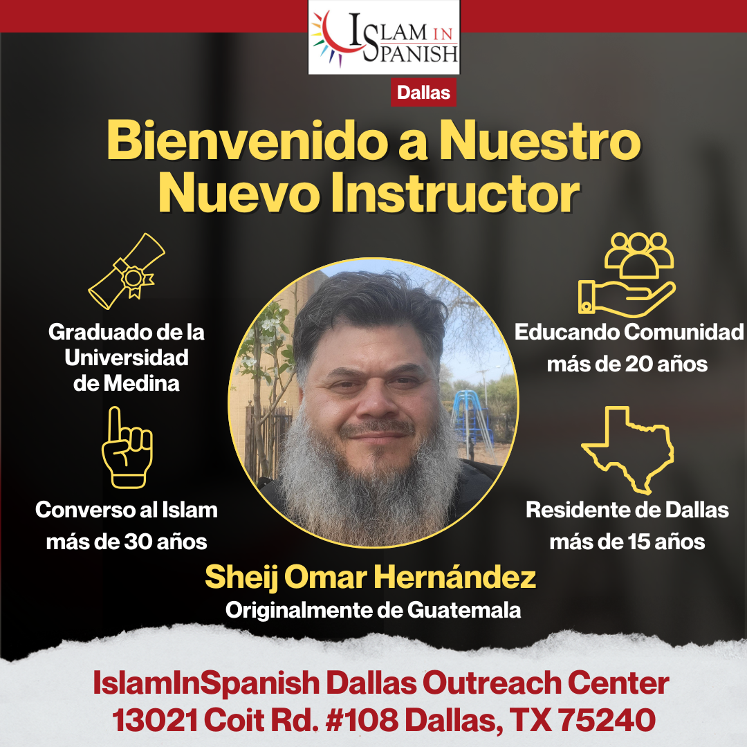 Estamos muy contentos por anunciar que ahora tenemos un nuevo educador para IslamInSpanish Dallas, Alhumdulillah. Sheij Omar Hernández es un graduado de la Universidad de Medina con más de 20 años trabajando con la comunidad. Es un converso guatemalteco y residente de Dallas MashaAllah.